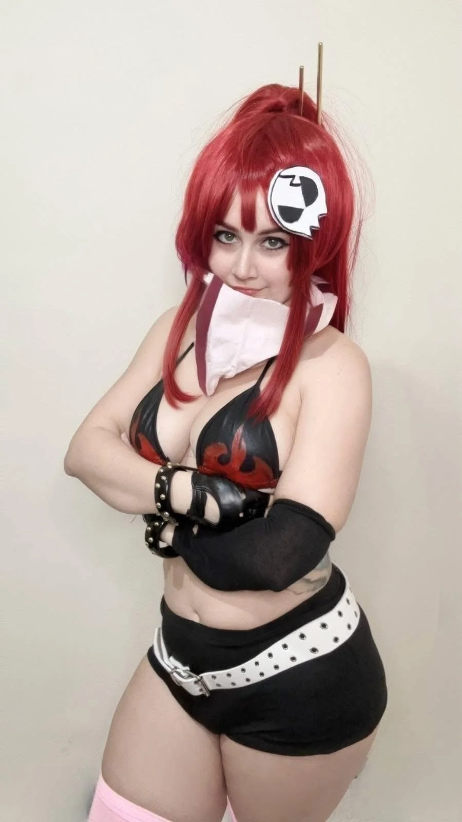 Eu gostei do cosplay, mas acho que é uma personagem marcada pelo rifle, então senti falta do rifle. Mas de resto, os detalhes estão muito bem feitos. O cachecol listrado. A caveirinha. E até as luvas de tamanhos diferentes. Adorei.
